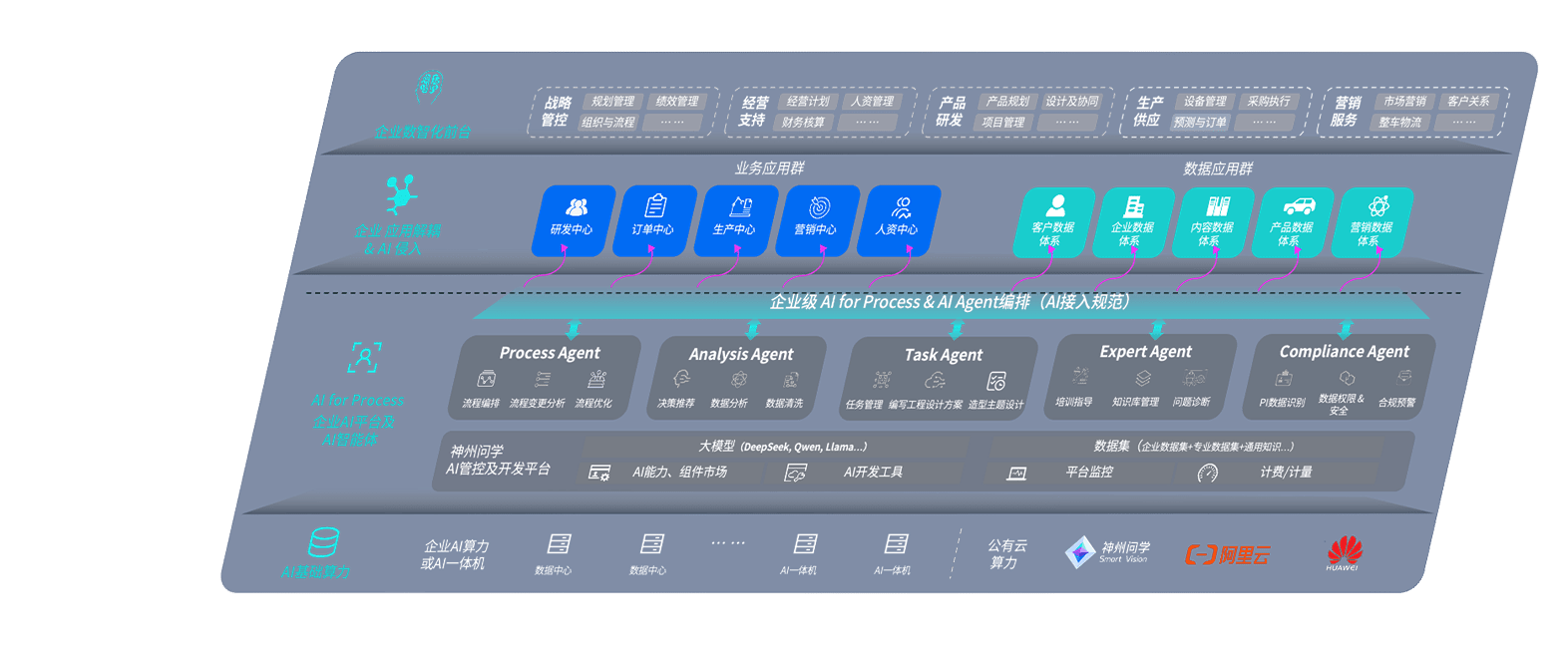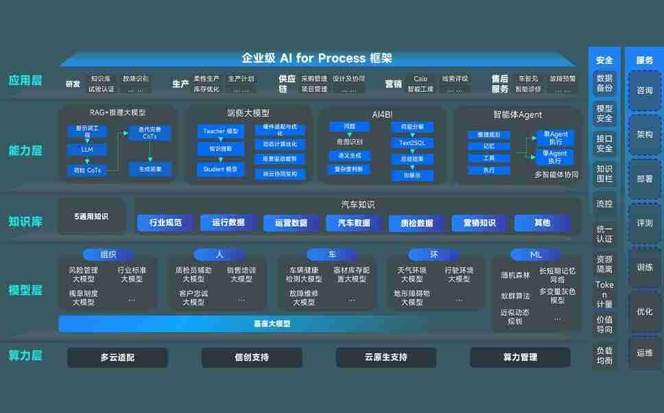 端到端的一站式AI工作空间深度融合了从企业战略规划到日常经营的全流程业务板块,,,,定向解决车企内部领域多、、部门多、、链条长、、、、场景碎片化等难题,,支持车企快速构建以AI为核心的生产力写作体系,,,,实现任务执行与AI能力的无缝集成与交互